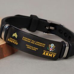 Incorporating an adaptive strap mechanism, the bracelet transcends traditional sizing limitations. It emerges as a profound tribute to veterans, symbolizing dedication, service, and the enduring spirit of patriotism.