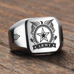 Presented in three elegant finishes – Silver, Gold, and Black – each offering distinct character and appeal. Beyond simple ornamentation, these rings honor military tradition, representing courage and commitment to service.