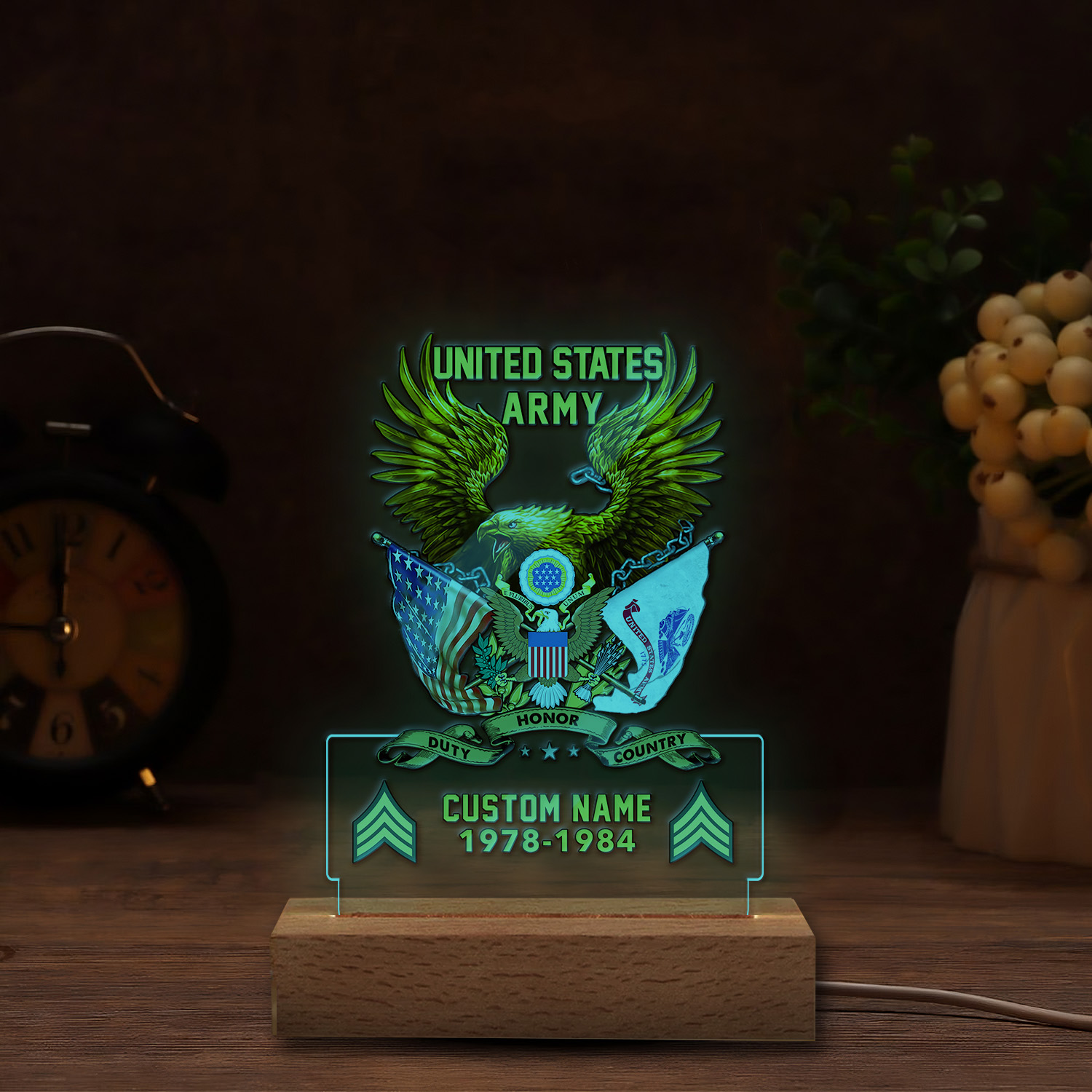 Add a personal touch to our personalized ornament. Customize it with your name, rank, or any other meaningful information to create a heartfelt token of appreciation for your Led Lamp service.