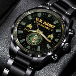 Personalize your Black Stainless Steel Watch with custom engravings of your name, rank, and years of service. This thoughtful addition transforms your watch into a cherished memento, honoring your dedication and commitment to service.