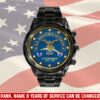 Make your Black Stainless Steel Watch uniquely yours by adding your custom information such as name, rank, and years of service. This personalized detail adds a special touch, celebrating your military journey with elegance and grace.