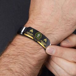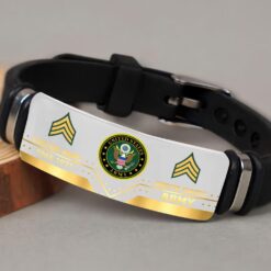 Incorporating an adaptive strap mechanism, the bracelet transcends traditional sizing limitations. It emerges as a profound tribute to veterans, symbolizing dedication, service, and the enduring spirit of patriotism.
