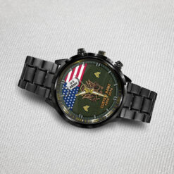 Our Black Stainless Steel Watch makes a thoughtful gift for any occasion, whether it’s to commemorate a milestone in your military career, celebrate a retirement, or simply to express gratitude to a fellow service member. It’s a meaningful token that honors the dedication and sacrifice of those who have served our country.