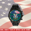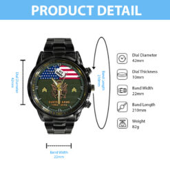 Make your Black Stainless Steel Watch uniquely yours by adding your custom information such as name, rank, and years of service. This personalized detail adds a special touch, celebrating your military journey with elegance and grace.