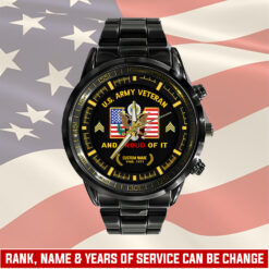 Make your Black Stainless Steel Watch uniquely yours by adding your custom information such as name, rank, and years of service. This personalized detail adds a special touch, celebrating your military journey with elegance and grace.