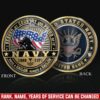 Honor Their Service: customize with veteran’s name, achieved rank, service branch, assigned unit, career specialty, or total years served on both coin faces.