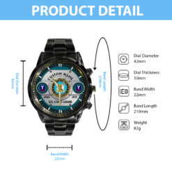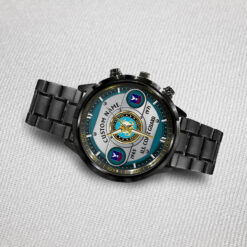 Make your Black Stainless Steel Watch a reflection of your personal journey by including custom details like your name, rank, and years of service. This personalized feature not only adds a touch of elegance but also serves as a timeless tribute to your dedicated service to our country.
