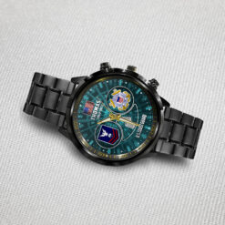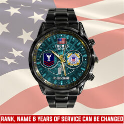 Elevate your Black Stainless Steel Watch with a personal touch by incorporating your custom details like name, rank, and years of service. This unique addition commemorates your military experience in a stylish and meaningful way.