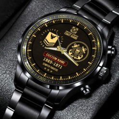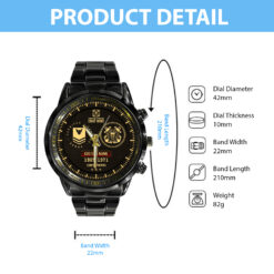 Make your Black Stainless Steel Watch a reflection of your personal journey by including custom details like your name, rank, and years of service. This personalized feature not only adds a touch of elegance but also serves as a timeless tribute to your dedicated service to our country.
