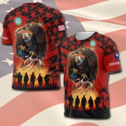 Our personalized Veteran T-shirt is a meaningful gift that carries a powerful message of respect and gratitude. It serves as a token of appreciation for the sacrifices made by our veterans, honoring their courage and dedication to protecting our freedoms. Presenting this T-shirt is a heartfelt way to express admiration and support for their service, reminding them that their efforts are deeply valued and remembered.