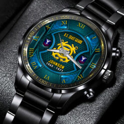Make your Black Stainless Steel Watch uniquely yours by adding your custom information such as name, rank, and years of service. This personalized detail adds a special touch, celebrating your military journey with elegance and grace.