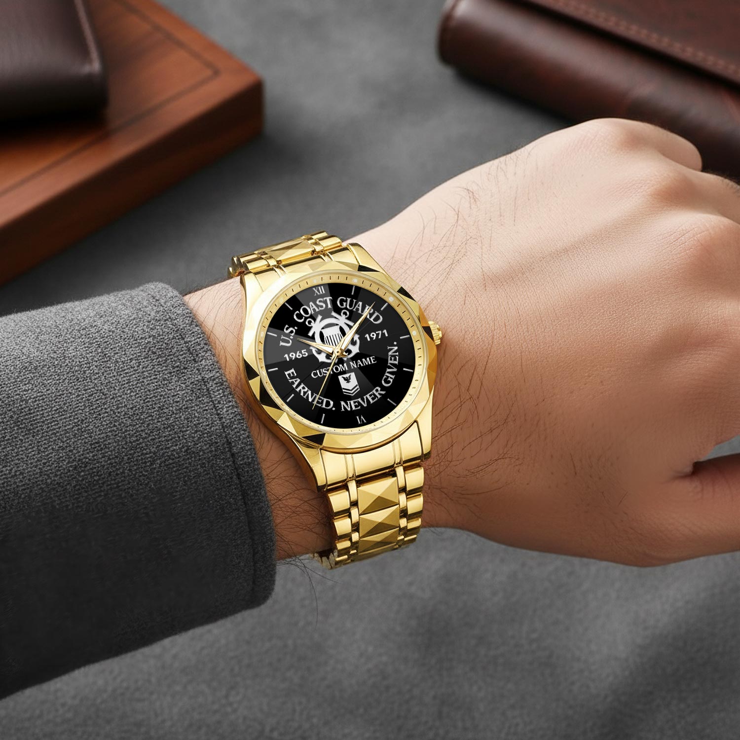 Express your unwavering support and admiration for a service member or veteran in your life with our Diamond-Cut Bezel Watch. Whether presented on Veterans Day, retirement, or any occasion honoring military service, this watch stands as a testament to their unwavering dedication and is sure to be treasured for years to come.