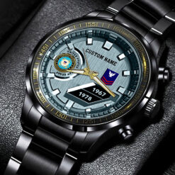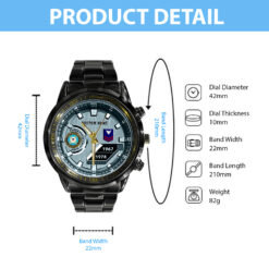 Make your Black Stainless Steel Watch uniquely yours by adding your custom information such as name, rank, and years of service. This personalized detail adds a special touch, celebrating your military journey with elegance and grace.