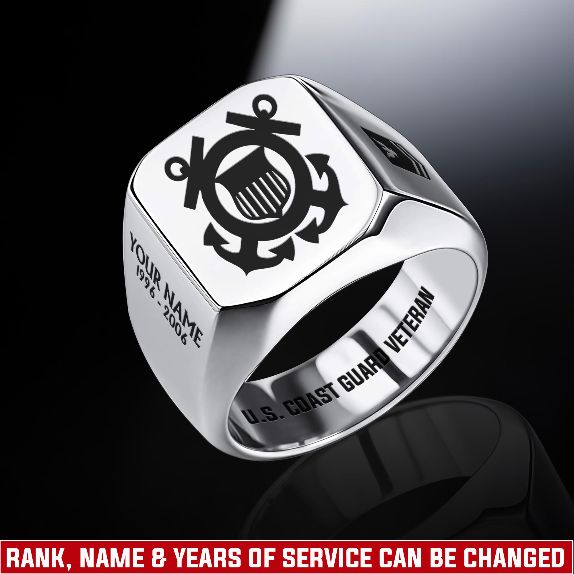 You’re enabled to customize your name, rank, rating, etc. to have them printed on the personalized engraved men’s ring. Personalize this meaningful piece to showcase your military credentials and cherished memories.