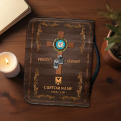 Elevate your faith and style with our Personalized Leather Bible Cover, a fusion of faith and fashion that serves as a source of inspiration for Christians. Each cover is adorned with meaningful Bible verses, carrying a piece of your spiritual journey wherever you go. It serves as a powerful reminder of the love and inner strength within you, making it an ideal accessory for personal use or a heartfelt religious gift for a Christian veteran on special occasions.