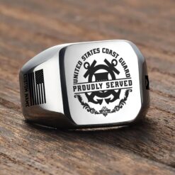 You’re enabled to customize your name, rank, rating, etc. to have them printed on the personalized engraved men’s ring. Transform this piece into a personal memorial of your service and accomplishments.