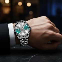The watch’s water-resistant design accommodates everyday water exposure from hand-washing and face washing, providing peace of mind during daily routines. Enhanced with a scratch-resistant and anti-fog mirror, the timepiece ensures clear, uninterrupted visibility in diverse environments, making it an ideal choice for those who value reliability and performance in their accessories.