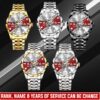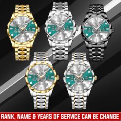 Make your Diamond-Cut Bezel Watch a reflection of your personal journey by including custom details like your name, rank, and years of service. This personalized feature not only adds a touch of elegance but also serves as a timeless tribute to your dedicated service to our country.