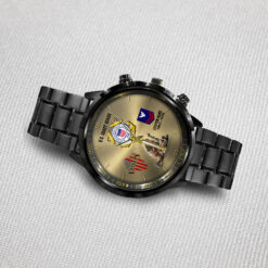 Make your Black Stainless Steel Watch uniquely yours by adding your custom information such as name, rank, and years of service. This personalized detail adds a special touch, celebrating your military journey with elegance and grace.