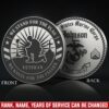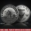 Make It Personal: engrave both sides with service member name, military rank, branch of service (Army, Navy, Air Force, Marines, Coast Guard), unit designation, or years of service.
