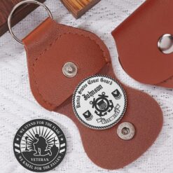 The Military Commemorative Challenge Coin showcases exceptional craftsmanship with detailed engravings on both sides of solid stainless steel. Protected in a quality PU leather case with secure snap fastener, this coin honors military heritage and individual achievement.