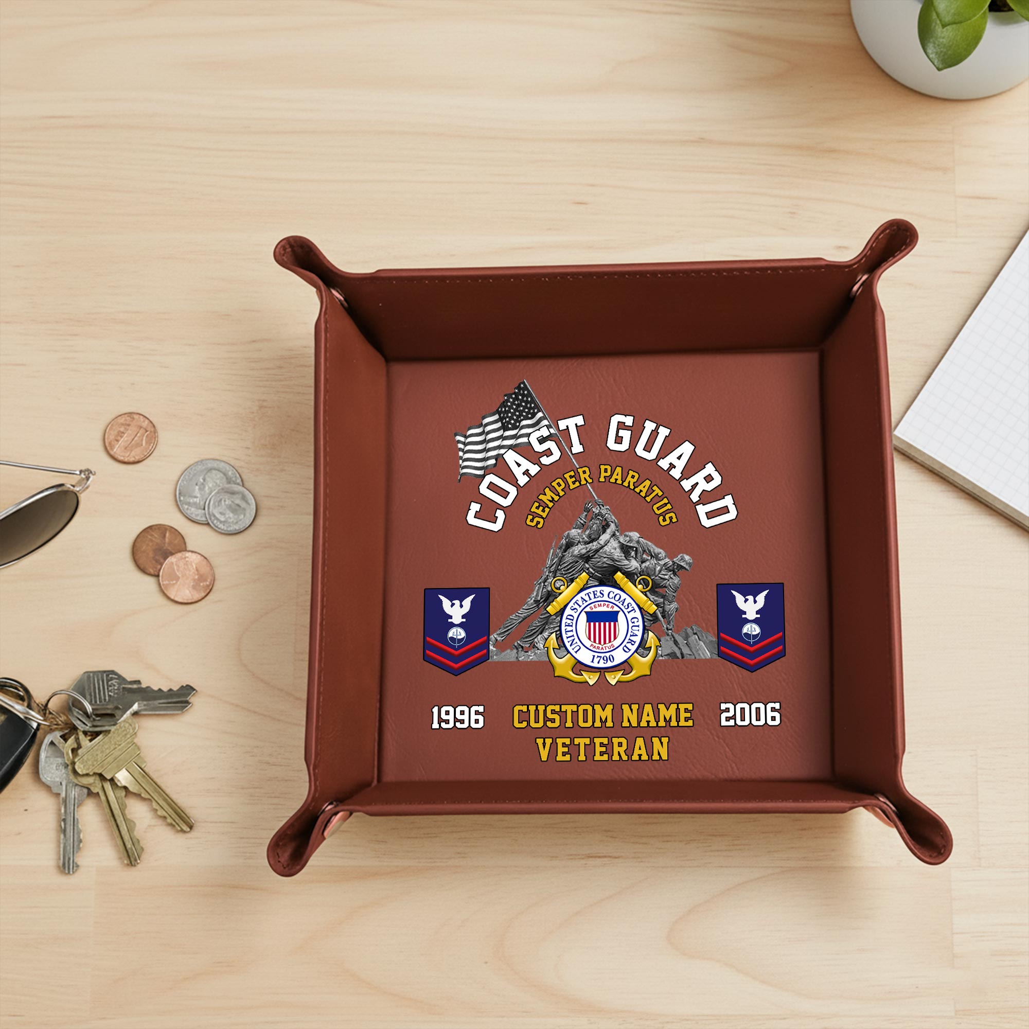 US Coast Guard, Duty, Honor, Country – Personalized Leather Valet Tray