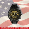 Customize your Black Stainless Steel Watch with your name, rank, and years of service for a truly one-of-a-kind timepiece. This personalized feature allows you to showcase your military journey with pride and distinction.