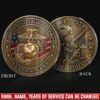 Honor Their Service: customize with veteran’s name, achieved rank, service branch, assigned unit, career specialty, or total years served on both coin faces.