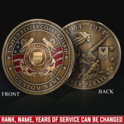 Honor Their Service: customize with veteran’s name, achieved rank, service branch, assigned unit, career specialty, or total years served on both coin faces.