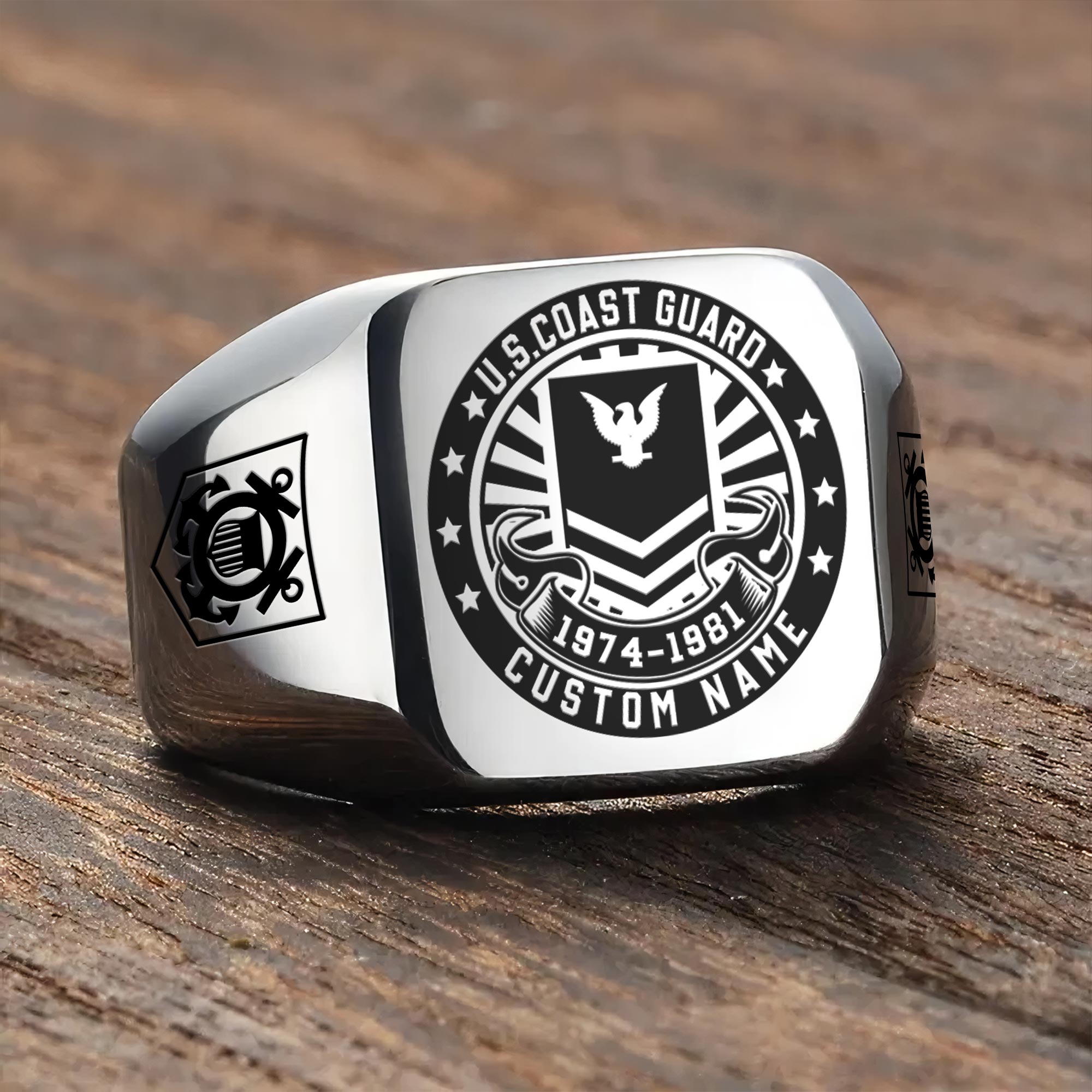 You’re enabled to customize your name, rank, rating, etc. to have them printed on the personalized engraved men’s ring. Transform this piece into a personal memorial of your service and accomplishments.