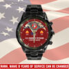 Customize your Black Stainless Steel Watch with your name, rank, and years of service for a truly one-of-a-kind timepiece. This personalized feature allows you to showcase your military journey with pride and distinction.