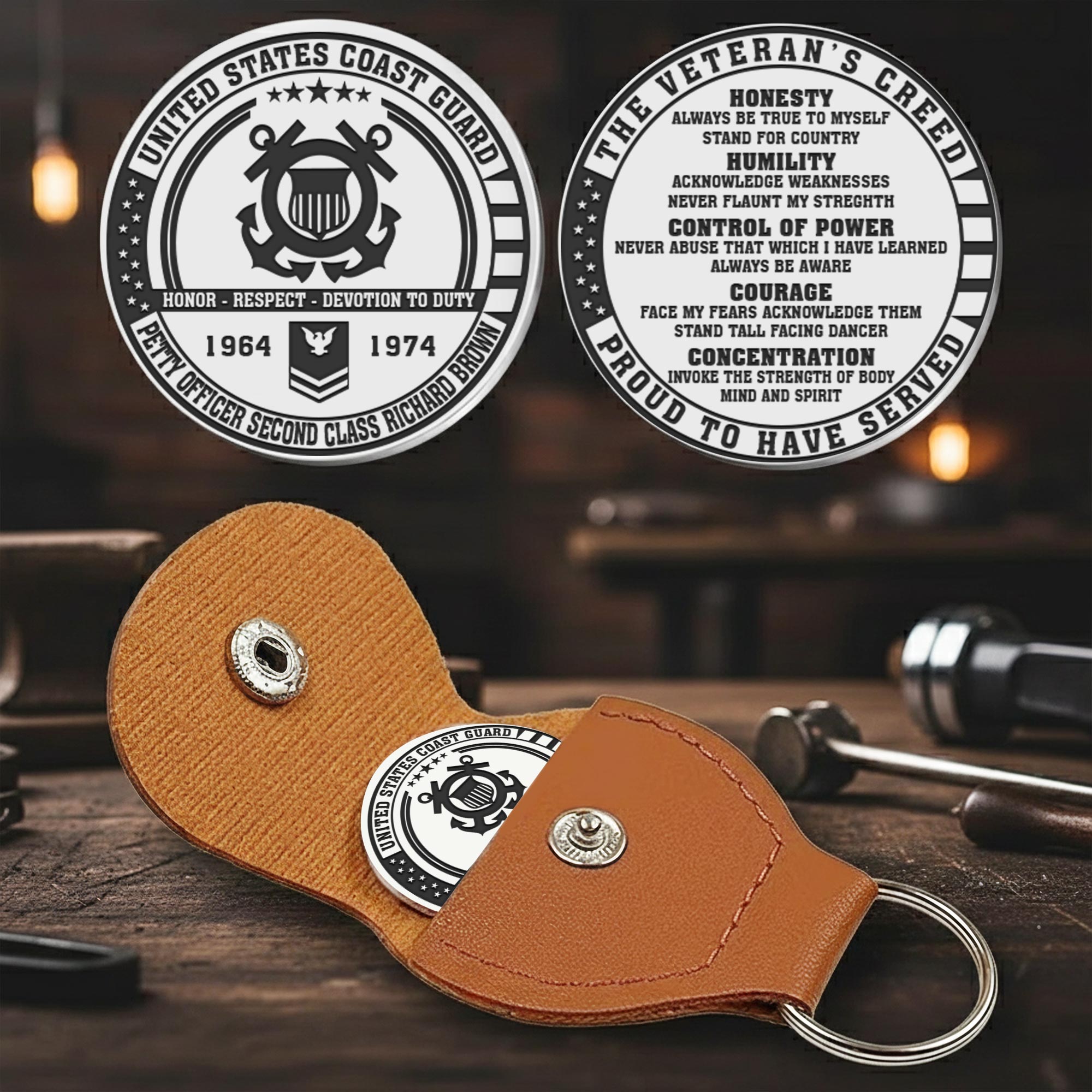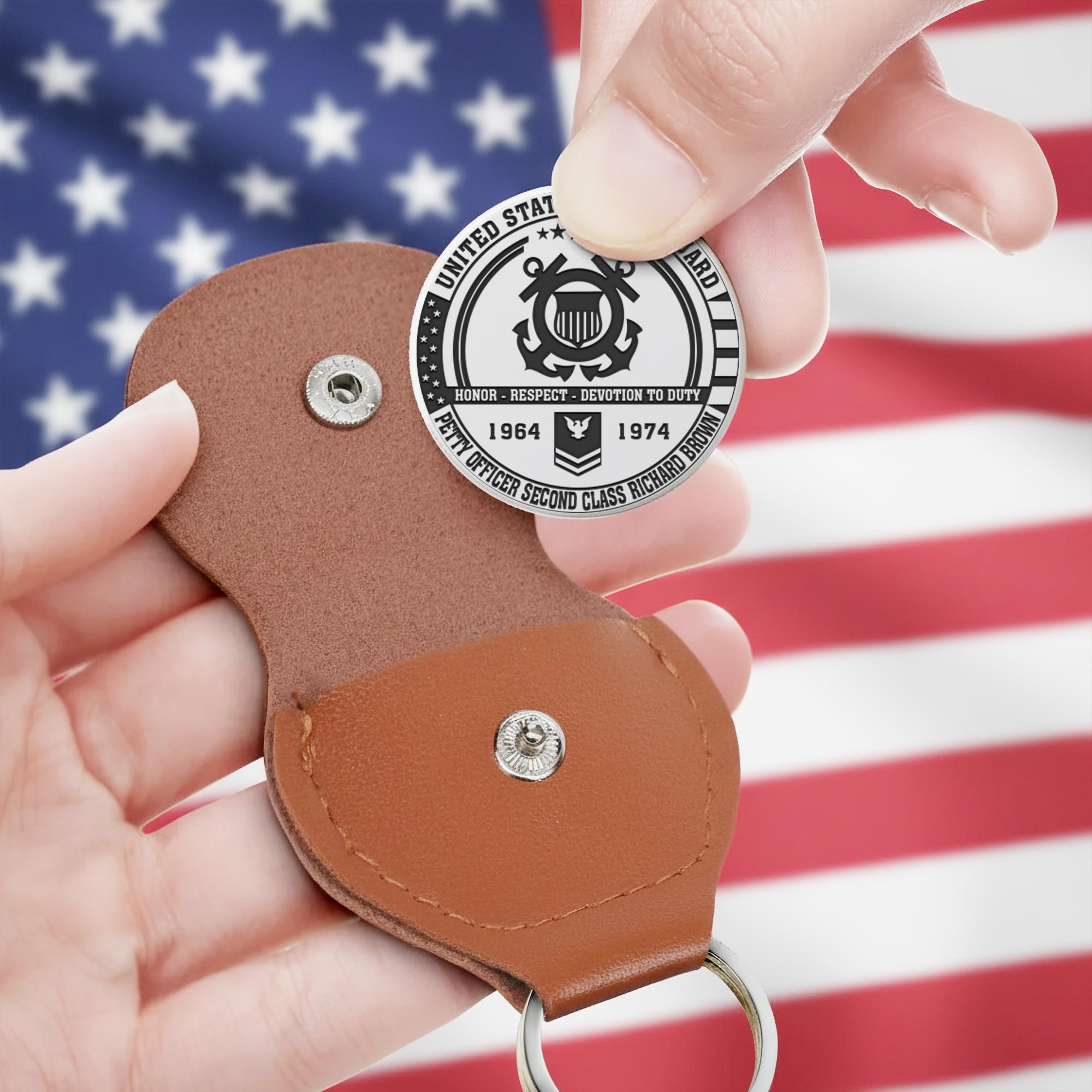 Honor the brave with the Personalized Military Challenge Coin, featuring double-sided custom engraving on durable stainless steel. Complete with a premium PU leather protective case, this coin embodies the spirit of military tradition and honor.