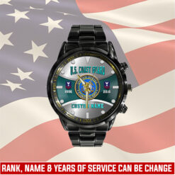 Elevate your Black Stainless Steel Watch with a personal touch by incorporating your custom details like name, rank, and years of service. This unique addition commemorates your military experience in a stylish and meaningful way.