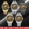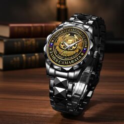 Make your Diamond-Cut Bezel Watch a reflection of your personal journey by including custom details like your name, rank, and years of service. This personalized feature not only adds a touch of elegance but also serves as a timeless tribute to your dedicated service to our country.