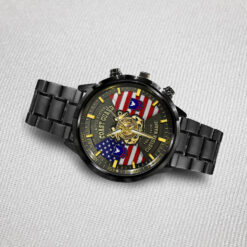 Express your unwavering support and admiration for a service member or veteran in your life with our Black Stainless Steel Watch. Whether presented on Veterans Day, retirement, or any occasion honoring military service, this watch stands as a testament to their unwavering dedication and is sure to be treasured for years to come.
