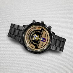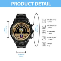 Make your Black Stainless Steel Watch a reflection of your personal journey by including custom details like your name, rank, and years of service. This personalized feature not only adds a touch of elegance but also serves as a timeless tribute to your dedicated service to our country.