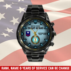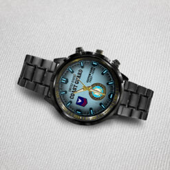 Make your Black Stainless Steel Watch a reflection of your personal journey by including custom details like your name, rank, and years of service. This personalized feature not only adds a touch of elegance but also serves as a timeless tribute to your dedicated service to our country.