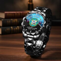 Elevate your Diamond-Cut Bezel Watch with a personal touch by incorporating your custom details like name, rank, and years of service. This unique addition commemorates your military experience in a stylish and meaningful way.