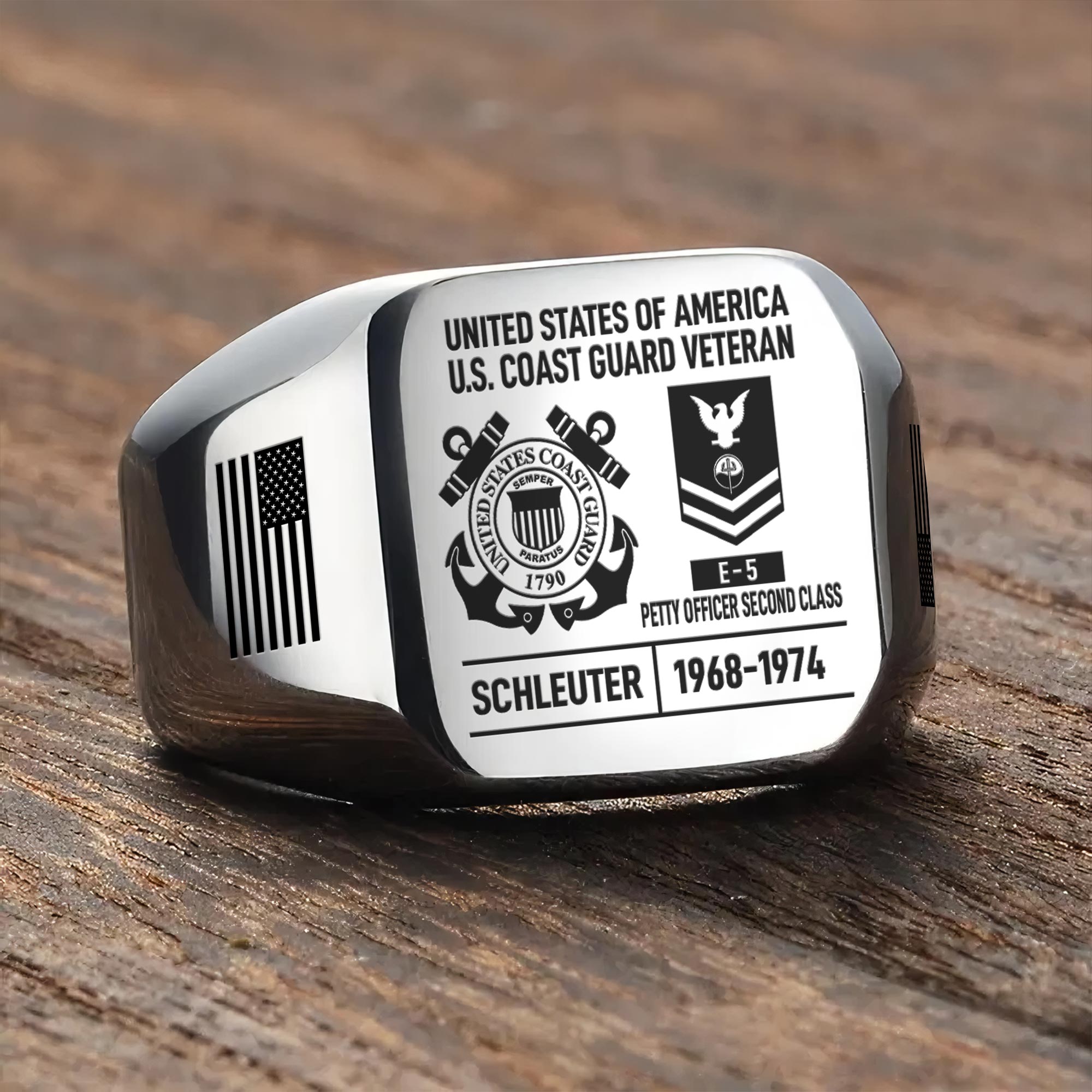 You’re enabled to customize your name, rank, rating, etc. to have them printed on the personalized engraved men’s ring. Make it uniquely yours by incorporating elements that celebrate your military identity and legacy.