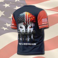 Celebrate the valor of our veterans with our printed classic T-shirt. This timeless garment serves as more than just clothing—it’s a symbol of appreciation and recognition for their sacrifices. Whether it’s a birthday, Veterans Day, or any occasion, wearing this T-shirt is a meaningful way to express your respect and gratitude for their service to our country.