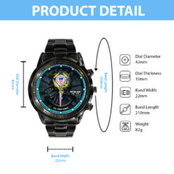 Elevate your Black Stainless Steel Watch with a personal touch by incorporating your custom details like name, rank, and years of service. This unique addition commemorates your military experience in a stylish and meaningful way.