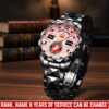 Personalize your Diamond-Cut Bezel Watch with custom engravings of your name, rank, and years of service. This thoughtful addition transforms your watch into a cherished memento, honoring your dedication and commitment to service.