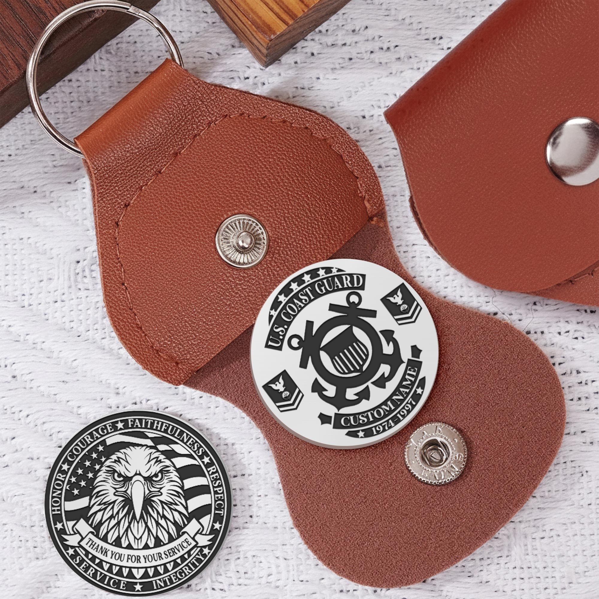 The Custom Military Challenge Coin Set combines precision engraving with quality materials. Crafted from solid stainless steel with detailed engravings on both faces, and protected by a handsome PU leather carrying case with secure closure.