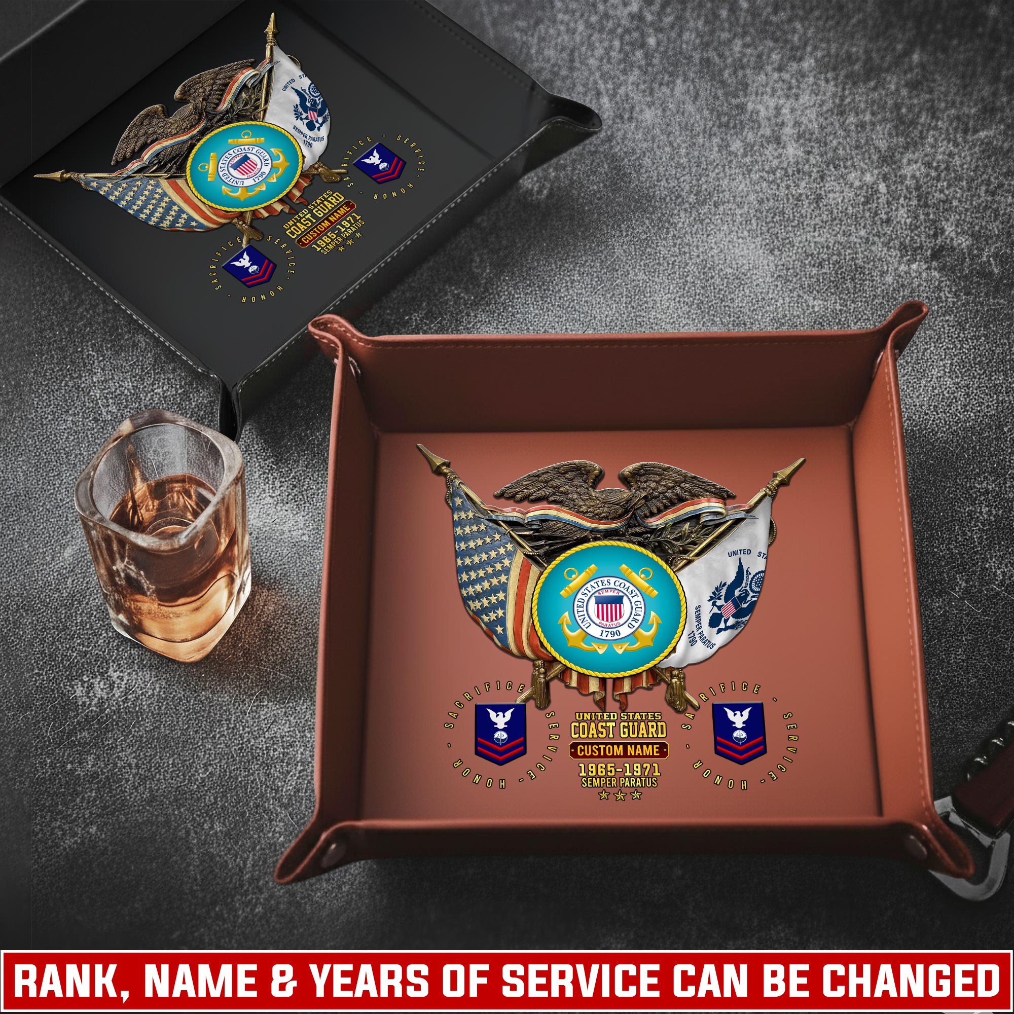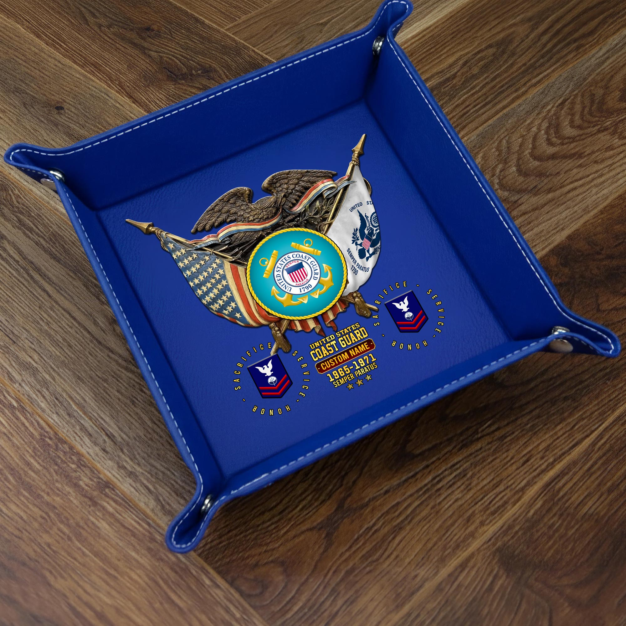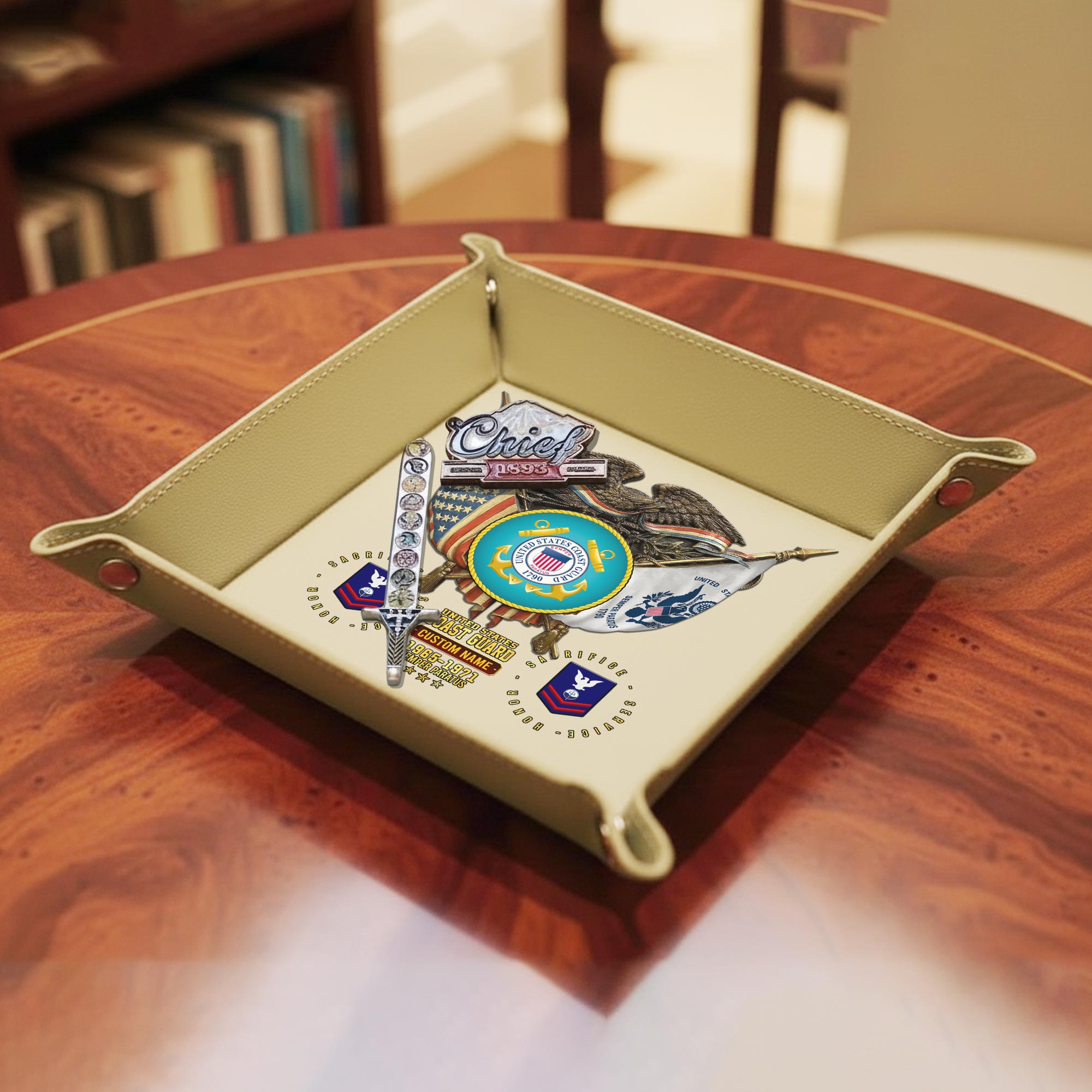 US Coast Guard, E 6 Gold – Personalized Leather Valet Tray