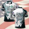 Antimicrobial fabric keeps you fresh and dry, while moisture-wicking properties ensure comfort. High-definition heat-dye printing delivers vibrant colors that last. Easy care with machine wash and tumble dry low.