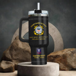 Add a special touch to your tumbler with our personalized options, perfect for commemorating the service of veterans with custom ranks, names, and more.
