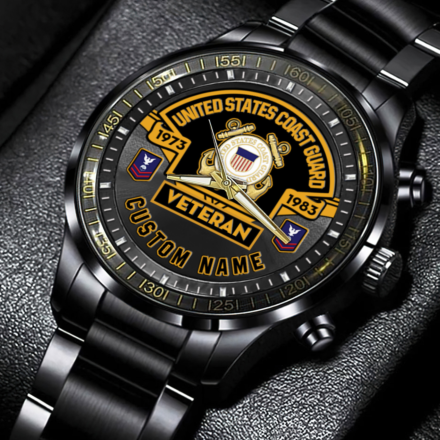 Elevate your Black Stainless Steel Watch with a personal touch by incorporating your custom details like name, rank, and years of service. This unique addition commemorates your military experience in a stylish and meaningful way.