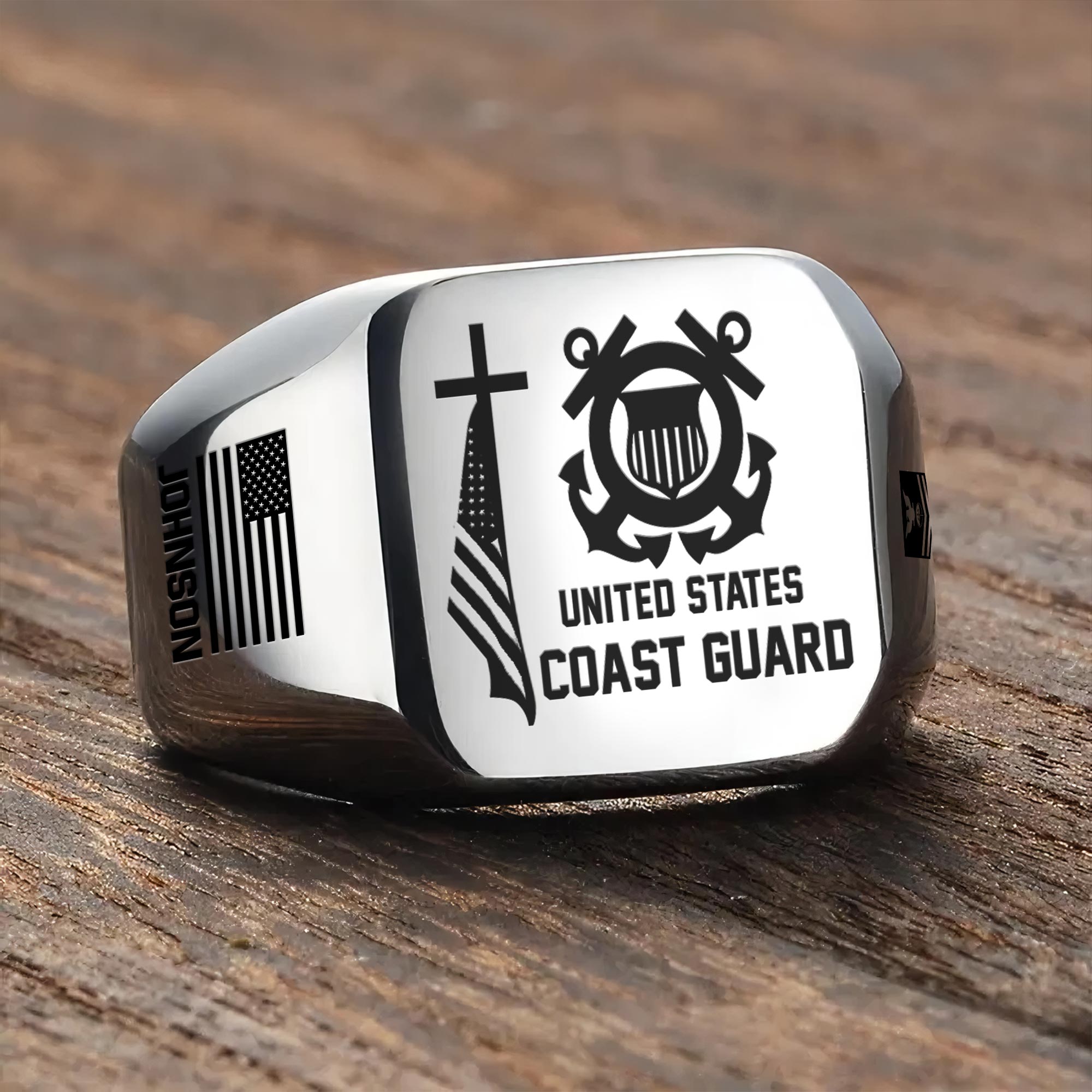 You’re enabled to customize your name, rank, rating, etc. to have them printed on the personalized engraved men’s ring. Create a unique piece that reflects your military journey and personal achievements.