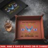 Advanced UV printing ensures your personalized design achieves permanent durability—completely resistant to fading or peeling with striking black engraving that preserves its impact over years of use. The superior vegan leather construction withstands daily wear while offering a luxurious feel and appearance, complemented by a practical snap-corner system that transitions seamlessly between assembled and flat storage configurations. This versatile tray serves veteran households as both a commemorative display piece and an efficient organizer for pocket contents, jewelry, and small electronics.