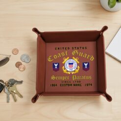 US Coast Guard, E 7 Red – Personalized Leather Valet Tray